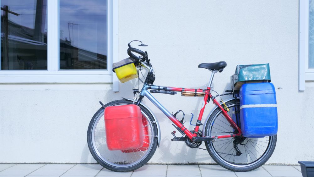 • La position des crochets sur vos bidons, dépendra de votre porte bagage, on ne cherchera pas forcément à centrer l’ensemble.
