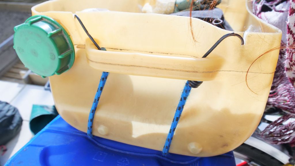 • Vous pouvez également enrouler du scotch d’électricien par exemple, pour protéger les endroits les plus sensibles, comme sur la première image. Ce bidon n’a qu’un mois de voyage depuis ses dernières modifications, j’attends donc une plus longue utilisation avant de confirmer que le scotch est une bonne idée !