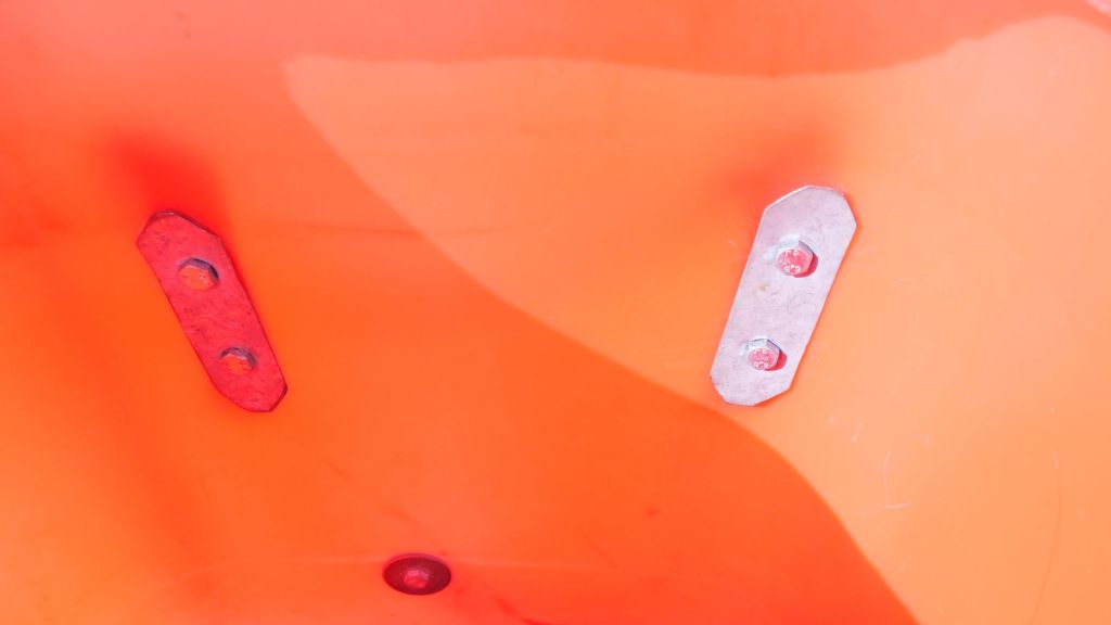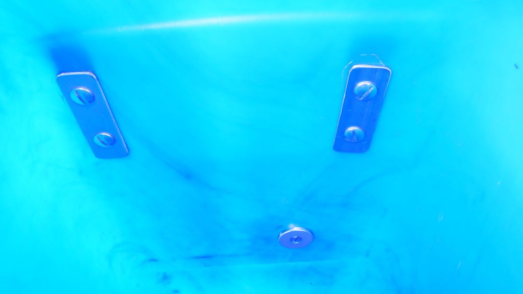 • Les trous que vous percerez dans les bidons afin de passer les vis, doivent être légèrement inférieurs aux vis elles-mêmes. Ainsi, les vis agrandiront légèrement les trous, mais le plastique coincé entre les crochets extérieurs et les plaquettes intérieures, épousera parfaitement les vis, et l’étanchéité ne sera pas compromise.