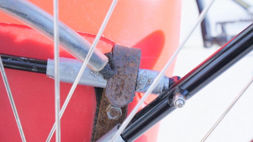 • Essayez de récupérer une accroche d’un vieux panier, ou siège bébé ou bien encore d’une ancienne sacoche guidon et arrangez à votre sauce ! Ici, on a récupéré une accroche que l’on a ensuite soudée au cerclage métallique.